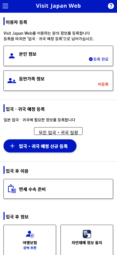 비짓재팬 입국 귀국 예정 등록