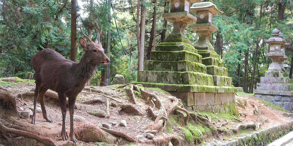나라 사슴공원은 약 1,200마리의 꽃사슴들이 머물고 있는 거대한 공원입니다. 사슴들은 이곳을 자유롭게 돌아다니며 상가와 도로까지도 움직일 수 있습니다.